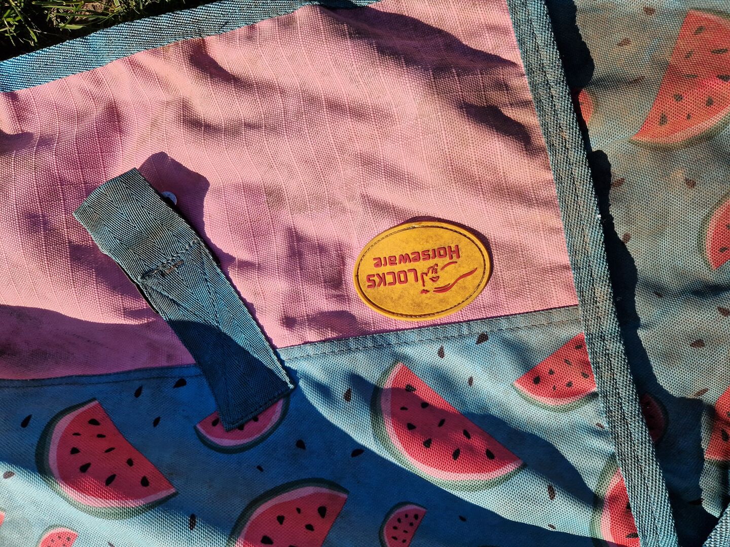 Super süße Pferdedecke mit Melonen drauf, hat ein dazugehöriges Halsteil