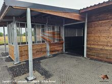 Wir bieten ebenfalls Ställe mit Ausfachung aus Kiefernholz oder Kunststoff, Unterstände, Überdachungen und weiteres Zubehör für die Pferdehaltung, wie Türen, Fenster sowie Paddock-Zäune.