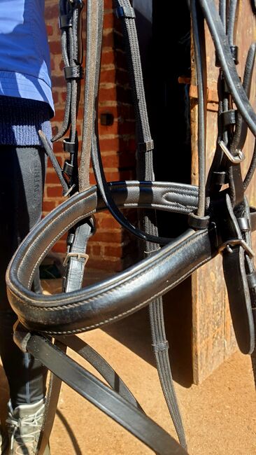 Ich verkaufe eine sehr schöne Vollblut-Trense in schwarz mit funkelndem Strass-Stirnriemen. Die Trense wurde nur 1x benutzt und ist daher in einem nahezu neuwertigen Zustand.