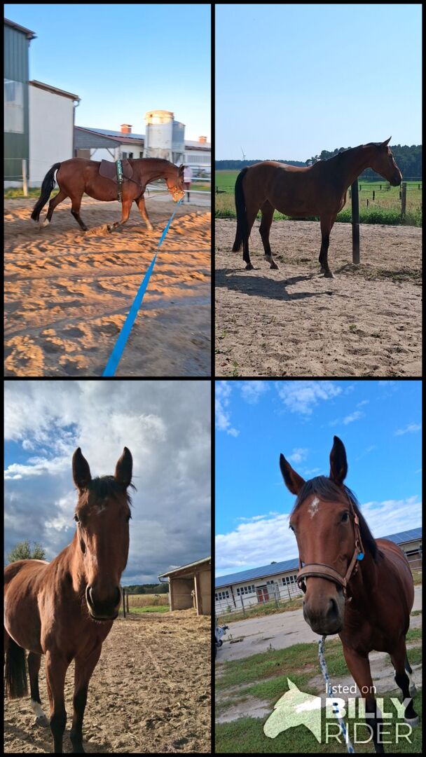 Zu unserer Stute: - Sie ist eine Deutsche Sportpferd Stute, ca. 165m (bis jetzt) - sie ist wie schon geschrieben erst 5 und daher manchmal noch etwas schreckhaft und unsicher - Ansonsten ist sie sehr lieb, brav und für jeden spaß zuhaben - Sobald man ihr Vertrauen hat kann man alles mit ihr machen, Spaziergänge, Boden-/Handarbeit etc. - Da sie noch wächst und Zahnt bekommt sie immer man wieder Pausen (wenn sie die benötigt)