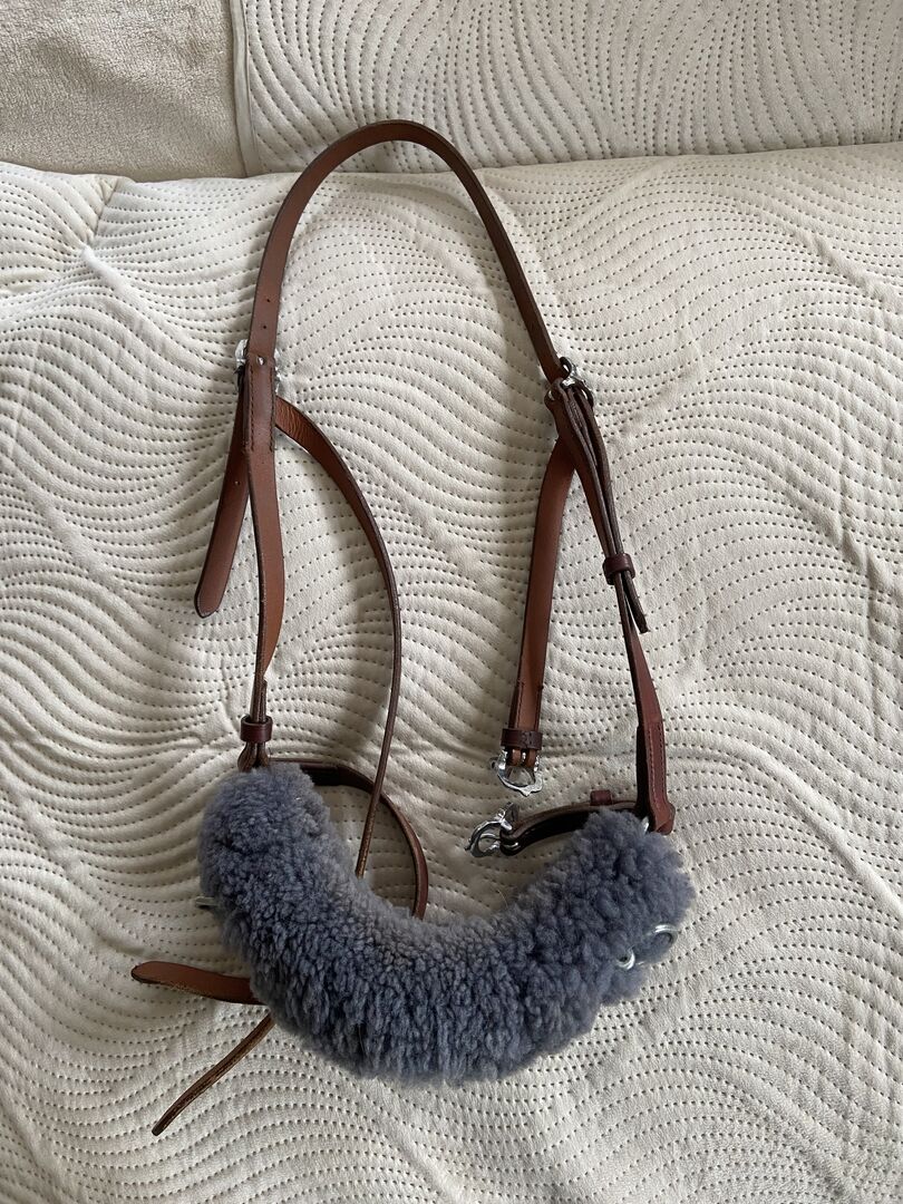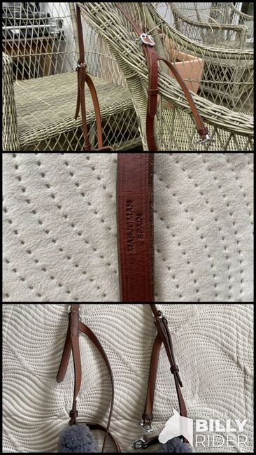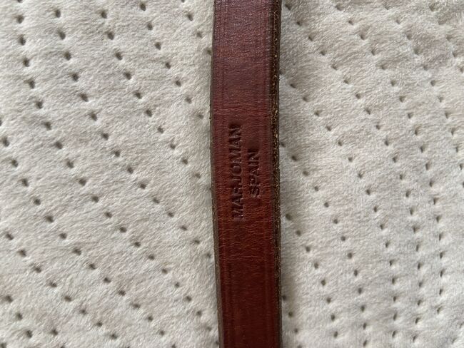 Barocker Cavecon/Cavesson mit flexibler Gliederkette im Nasenteil und Ganaschenriemen. Aus pflanzlich gegerbtem Rindsleder mit Cortesiaschnallen aus Messing.