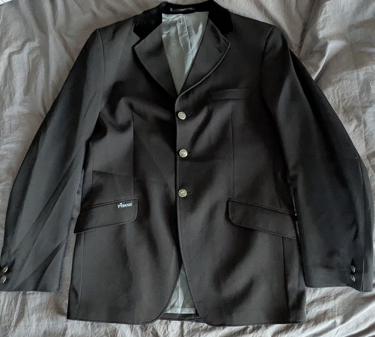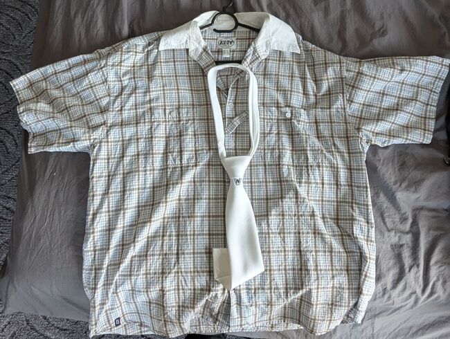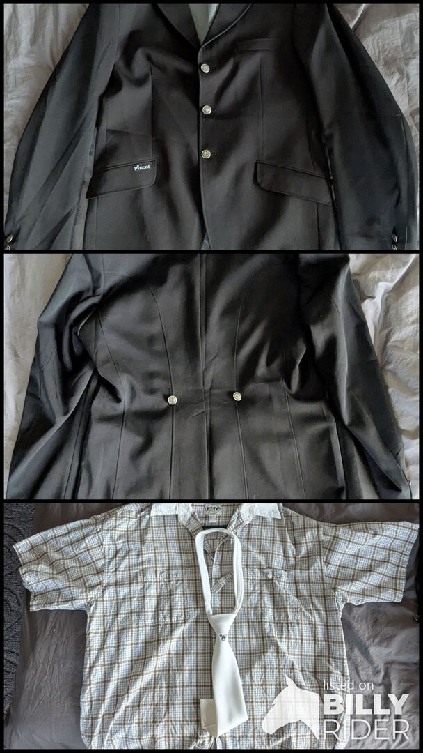 da ich schon seit Jahren kein Pferd mehr habe ist es nun an der Zeit. Ich biete hier ein Reitjackett der Marke Pikeur an. Größe 52 laut Schild, Hemd Größe XL. Trug ich selber nur zur Führzügelklasse bei Turnieren meiner Tochter.