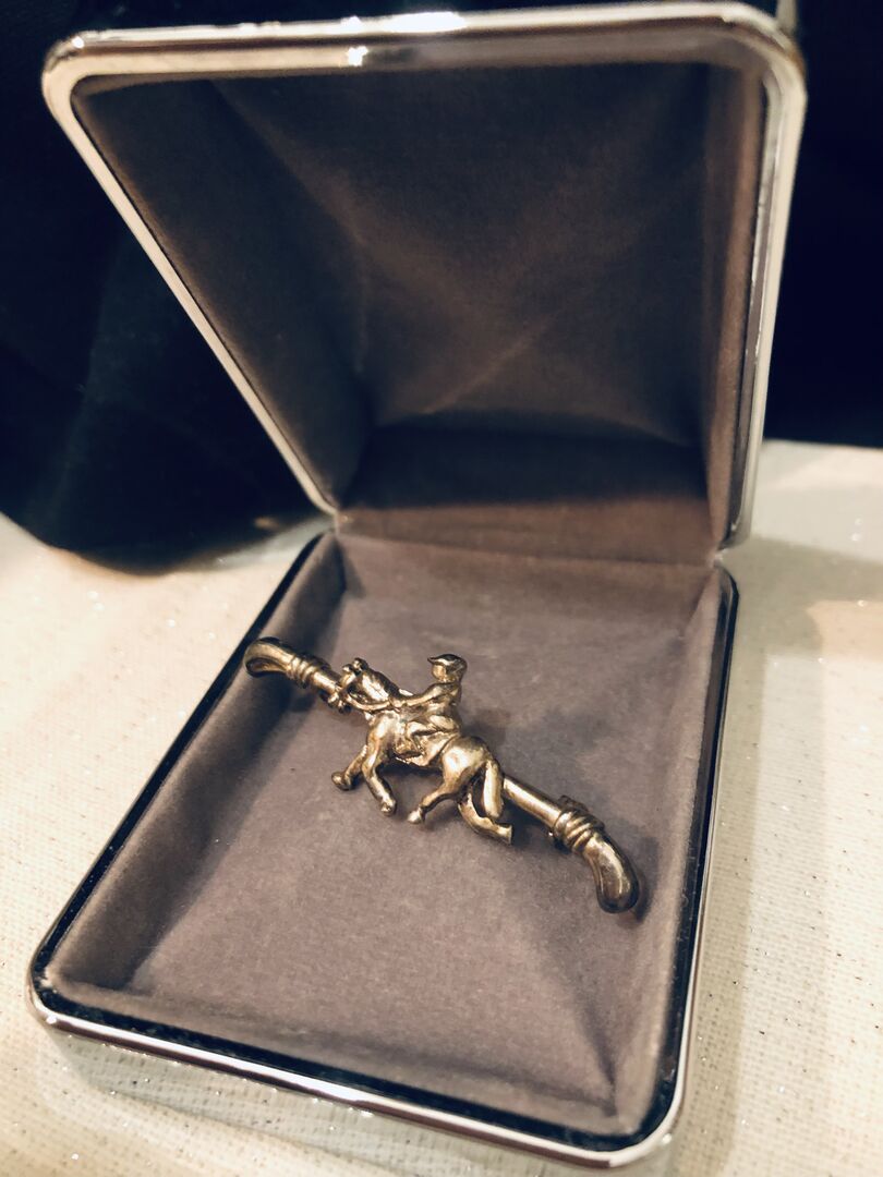 Plastronnadel / Plastron-Nadel Jagdplastron Turnier Silber (Ponyreiter & Gerte)