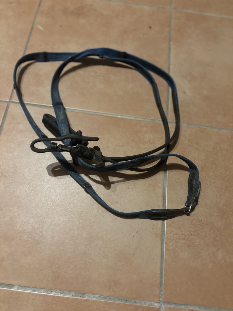 Ich bitte zwei Zügel in der Größe Pony an, das eine paar ist Schwarz und das andere Blau. Beide haben ein paar gebrauchs spuren. Vor dem Verkauf werden sie nochmal sauber genacht. Einzelpreis:5€