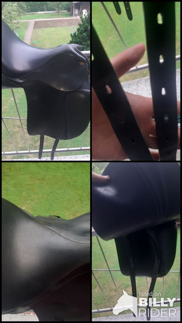 Drssursattel für Ponys oder Kinder 16.5 zoll Schwarz Grosse Pauschen tiefer Sitz In Top Zustand ohne Defekte. Grade vom Sattler neu gepolstert und begutachtet. Unserem Pony wird nach Muskelaufbau dieser Sattel nie mehr passen. Daher hier zum Verkauf. VK trägt der Käufer