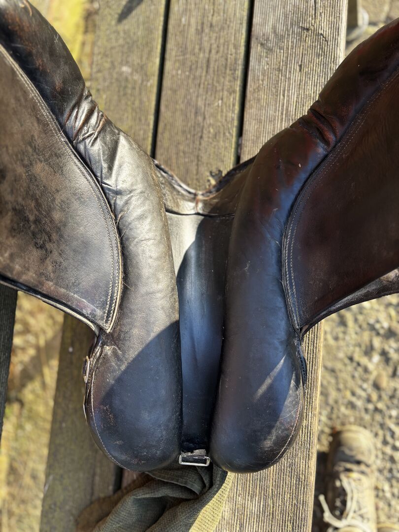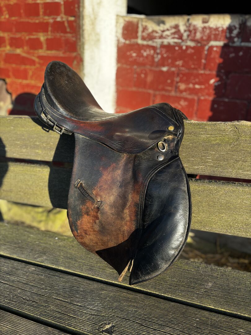 Der Sattel befindet sich insgesamt in einem zufriedenstellenen Zustand, weist jedoch einen kleinen Mangel auf: Eine Naht ist beschädigt, kann aber problemlos von einem Schuster oder Sattler repariert werden.
