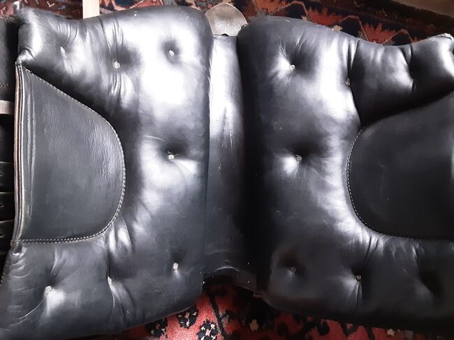 Gut erhaltener sitzbequemer Sattel, der Sicherheit vermittelt, mit passender Zalea aus Lammfell, Sattelunterseite schwarz Leder, mehr Bilder auf Anfrage