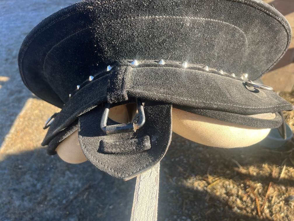 Die Potrera Ludomar unterscheidet sich von der Potrera Marjoman hauptsächlich durch dünnere Sattelkissen in der Kammer und einen größeren, stärker gepolsterten Sitz, durch den er weicher aber auch weniger tief ist. Für Pferde ab ca. 148 cm Stm. geeignet. Schwarzer Wildledersattel der Sattlerei Ludomar mit kurzem Sitz für Konfektionsgröße bis 36/38, ohne Zubehör Beschläge: silber, Kammer: K3, Baum: Holz‚ bezogen und metallverstärkt, Unterseite: Leder, Gurtung: Langgurt Sattelblatt: 54 cm, Oberschenkelfreiheit: 25 cm, Sitz: 35 cm, Auflage: 39cm, Gewicht: 7 kg