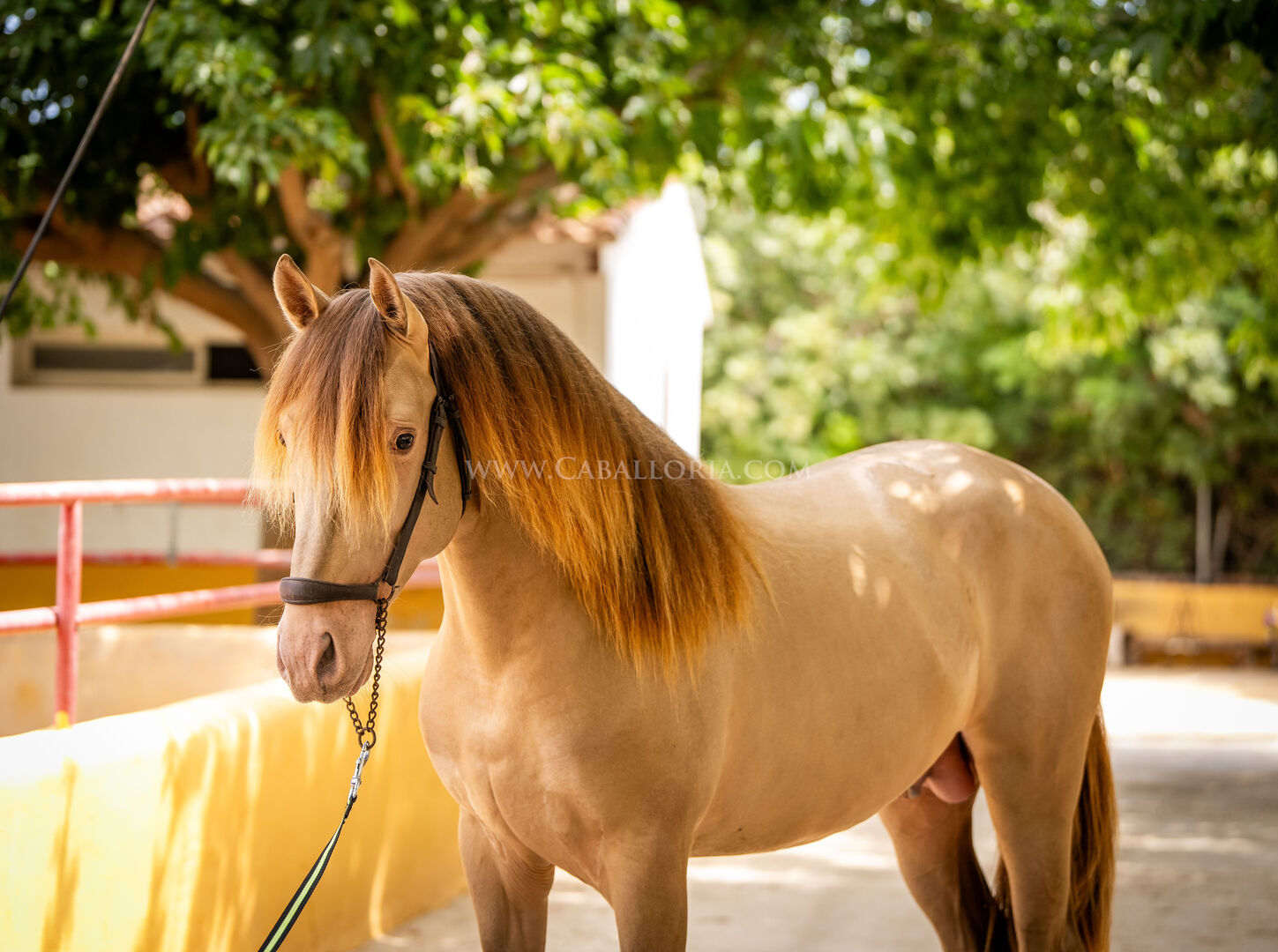 Girotti - ein 4-jähriger PRE-Hengst in der seltenen Farbe Isabelo mit doppeltem Pearl-Gen (Farbcode: ggAaEECCPrlPrl), ist bereits gekört und misst 160 cm Stockmaß. Diese außergewöhnliche Farbkombination macht ihn besonders interessant für die Farbzucht. Girotti ist kein Anfängerpferd. Er hat viel Feuer und Energie, ist dabei aber lieb im Umgang. Er geht problemlos mit anderen Hengsten und Stuten ins Gelände und wird auf dem Reitplatz in allen drei Gangarten geritten. Trotz seiner Energie ist Girotti verspielt und typisch für sein Alter noch recht albern. Auf Wunsch kann er gelegt werden. Ein tolles Pferd für ambitionierte Reiter und Züchter! Mehr Informationen gerne auf Anfrage!