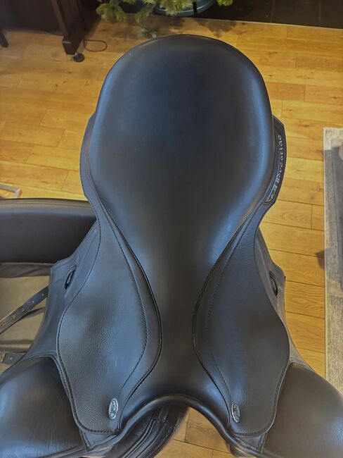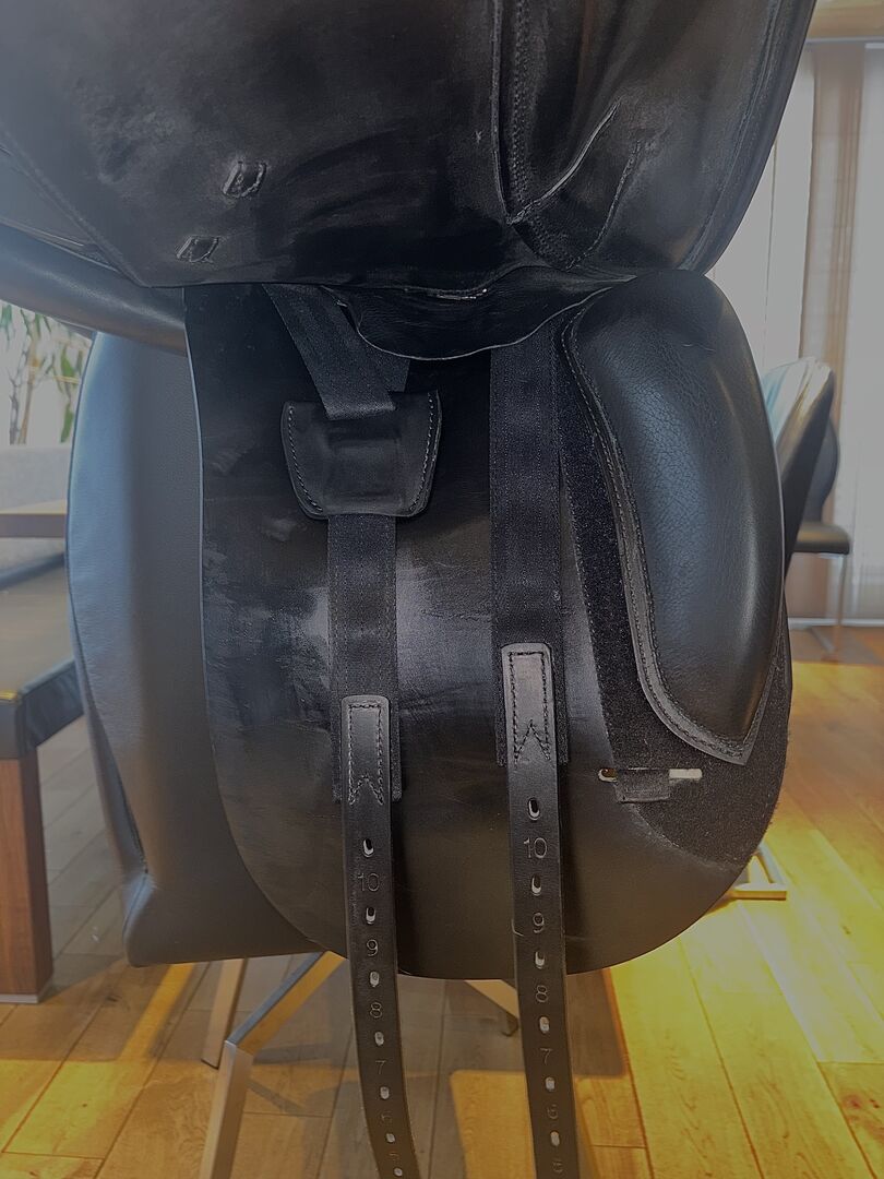 Der Sattel hat eine Sitzfläche von 17 Zoll sowie eine Kammerweite von 33 und wurde lediglich ca. ein halbes Jahr aktiv genutzt. Leider hat er weder optimal zum Pferd noch zum Reiter gepasst, weshalb er seitdem nicht mehr verwendet wird.