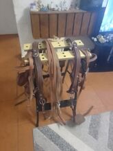 Zum Verkauf steht ein komplettes, hochwertiges Ledergeschirr für ein Pferdepaar. Dieses Set wurde nie benutzt und wurde professionell gelagert, um die Geschmeidigkeit und Integrität des Leders zu erhalten.