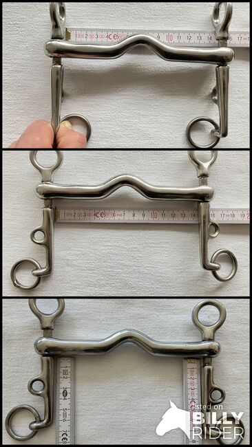 Pumpkandare aus Edelstahl mit kleiner Zungenfreiheit. Gebissstärke 12mm. Gebissgröße 14cm. Die Länge der Anzüge entnehmt bitte den Fotos. Ohne Kinnkettenhaken. Ohne Kinnkette.