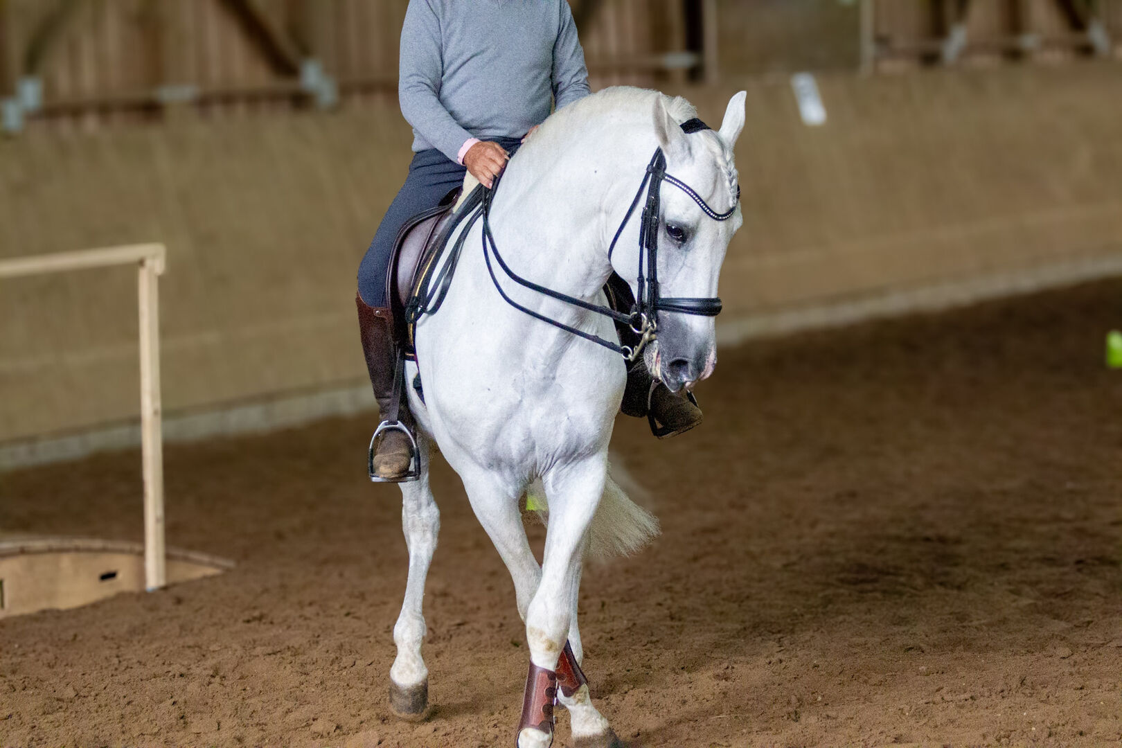 Besonders erwähnenswert ist seine herausragende Rittigkeit, die das Herz eines jeden Dressurreiters höher schlagen lässt. Er ist auf den Punkt geritten mit ausgezeichneten Schwung im Trab, der eine ausgeprägte Schwebephase hat. Piaffe und Passage beherrscht er in Perfektion, genauso wie alle Seitengänge in allen Gangarten, Galopppirouetten und Galoppwechsel bis hin zu Serienwechseln. Zudem zeigt er einen beeindruckenden spanischen Schritt, natürliche Passage an der Longe und ist auch in der Boden-/Freiarbeit weit ausgebildet. Letztes Jahr nahm er an einem Working Equitation Kurs unter Eduardo Almeida teil. Der WE Parcours ist ihm ebenso bekannt wie die Arbeit an der Garrocha. An dieser wurde er bereits in früheren Jahren gearbeitet und einhändig geritten. Sichtlich breitet es ihm sehr großen Spaß mit fliegenden Wechseln unter und an der Garrocha zu tanzen und damit alle Blicke auf sich zu ziehen.