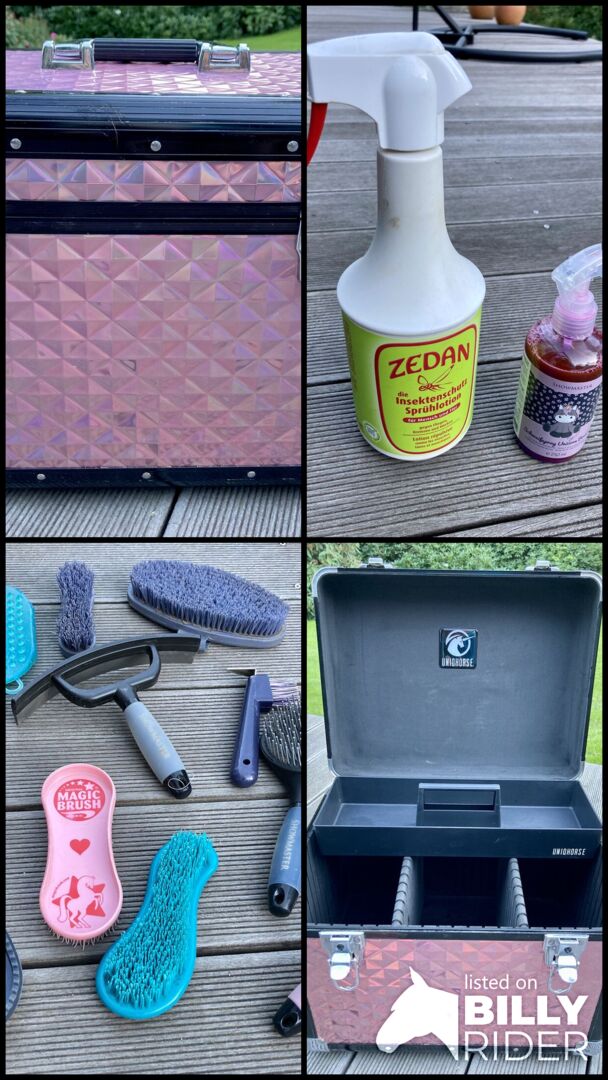 Putzkoffer in top Zustand der Marke Uniqhorse in der Farbe Unicorn Magic zu verkaufen. Zudem enthält der Putzkoffer verschiedene Bürsten, Hufauskratzer usw.