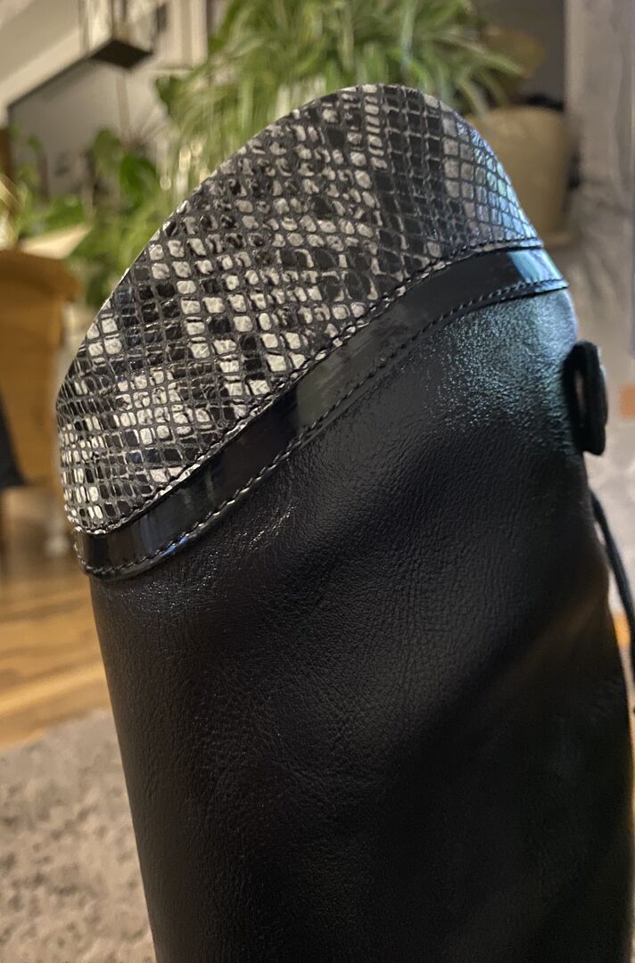 Verkaufe hier meine neuen Reitstiefel von QHP, die Stiefel sind sehr bequem durch ihr weiches Leder. Die Stiefel haben Sporen Halter und sind durch ihr Schlangen Muster und den Lack Details ein echter Hingucker. Durch das glatte Leder an der Innenseite hat man super halt am Sattel. Gerne faire Preisvorstellungen schicken
