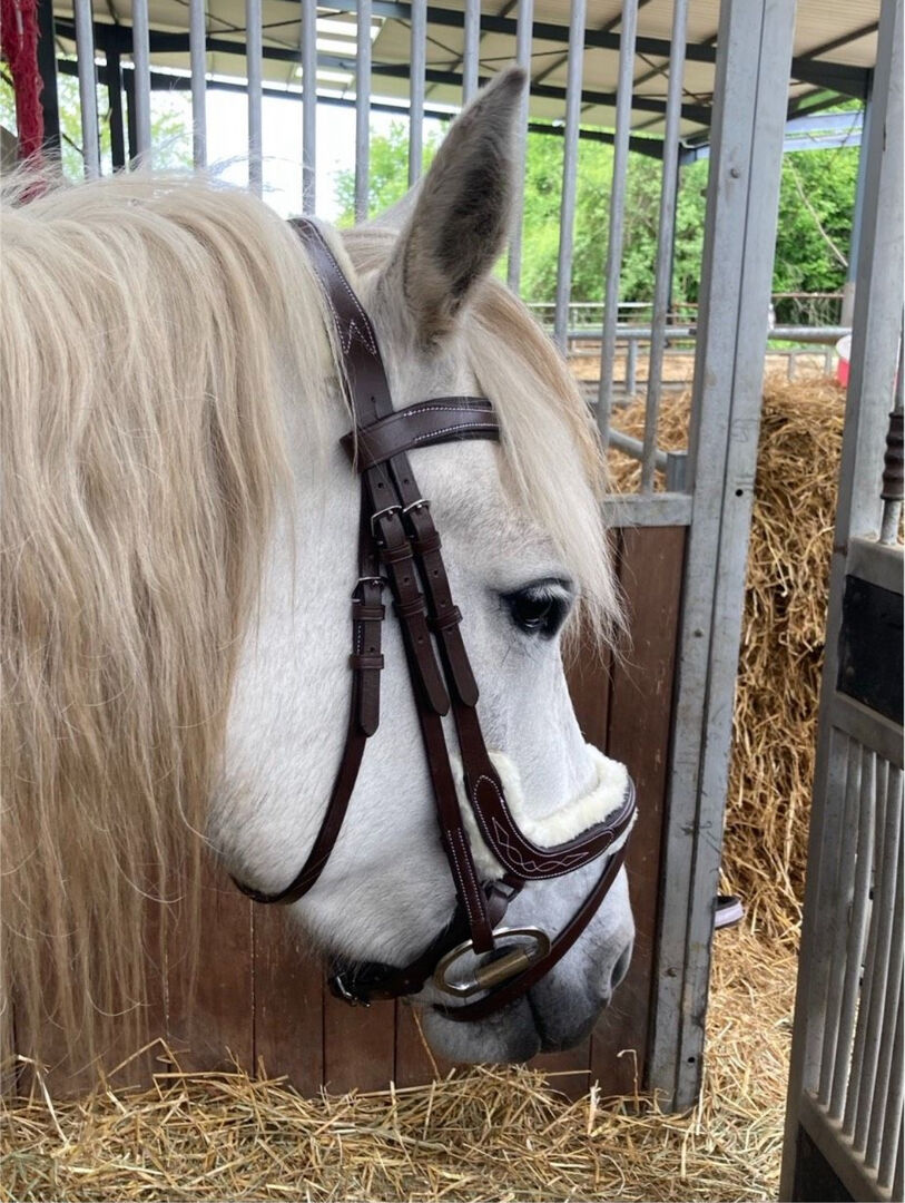 Super schicke Trense in braun, wenig getragen da sie mein Pony nicht gut gepasst hat und frisch geputzt+gewaschen beim Kauf.