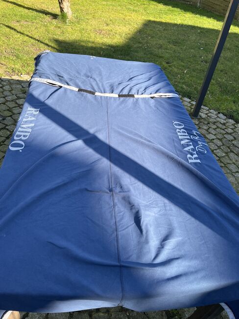 Verkaufe hochwertige Rambo Abschwitz-Decke der neuesten Generation mit integriertem Halsteil für kleinere Pferde, Größe S. 1 mal benutzt. Super Passform, durchdachtes Design. Original verpackt. Versand oder Abholung in Senden/Westfalen möglich, Neupreis 130 €