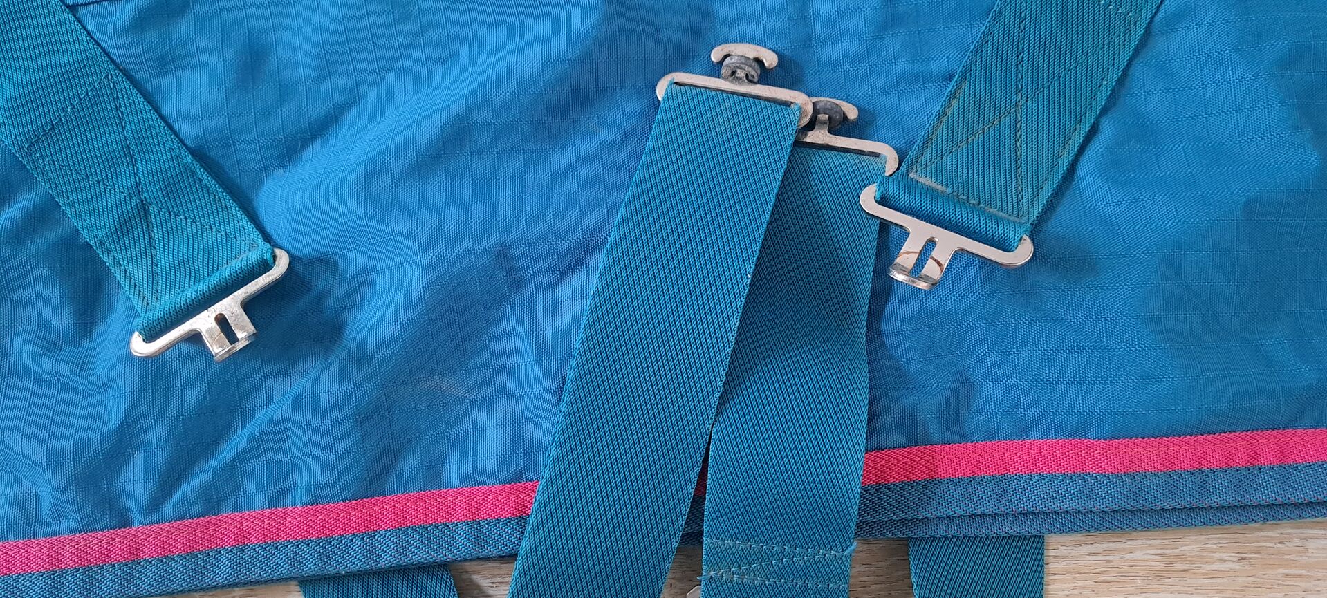 Regendecke von Shires wenig benutzt und frisch gewaschen (kann auf Wunsch und Aufpreis professionell imprägniert werden), habe beschädigt angegeben, weil oben auf dem Rűcken ein paar kleinere Lőcher sind, was keider bei Offenstallhaltung in der Herde nicht ausbleibt. Undonsten ist die Decke fast wie neu, an den Schnallen kein Rost und Klettverschlűsse funktionieren einwandfrei. Decke ist geeignet fűr Frűhling/Herbst und milde Wintertemperaturen. NP lag bei etwa 95 €
