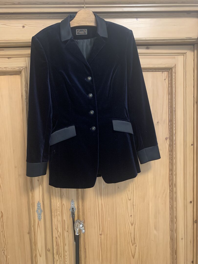 Ich biete eine nicht getragene Tunierjacke für Damen an. Sie ist aus dunkelblauem leichten Samtstoff und hat die Größe L.der Zustand ist wie neu.
