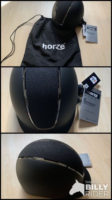 - Ich verkaufe diesen Reithelm von Horze in schwarz mit schwarzen Glitzer, dazu noch der Helmbeutel - Er ist größenverstellbar in der Größe L, von 58-60 - Etiketten sind noch dran - der Zustand ist unbenutzt also neu!!! UVP: 139€