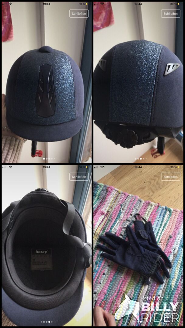 Reithelm von der Marke Horze in Größe 52-54, Reithandschuhe von Decathlon.Sehr guter Zustand. Bezahlung gerne über Paypal.