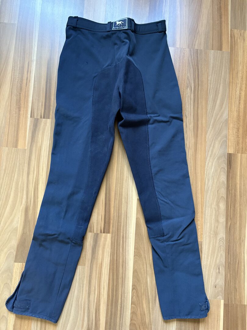 Verkaufe eine blaue Ledervollbesatz-Reithose in Größe 146. Die Hose ist schon etwas älter, aber trotzdem noch voll funktionsfähig und heile.