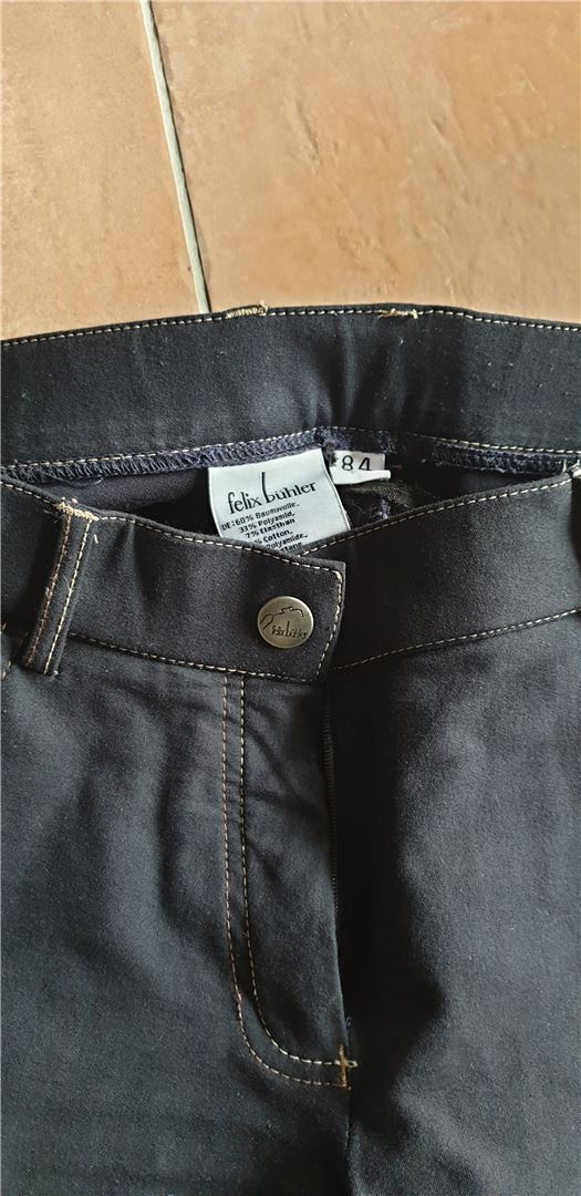 Ich verkaufe diese Felix Bühler Vollbesatz Reithose. Sie ist praktisch neu, nie getragen. Sie war ein Geschenk und mir leider etwas zu klein. Die Hose ist dunkelblau, oben mit heller Nath.