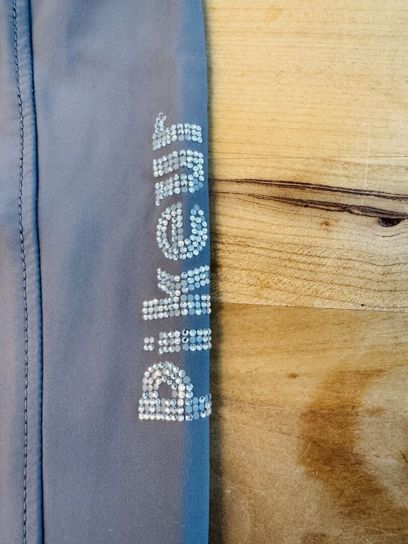 Die Reitleggings Ida Athleisure von Pikeur ist mit einem Full-Grip ausgestattet, der für einen idealen Halt und dadurch Sicherheit im Sattel sorgt. Die Reitleggings besteht aus einem elastischen Funktionsmaterial mit einer soften Innenseite, wodurch ein hervorragender Tragekomfort und eine optimale Passform gewährleistet wird. Zusätzlich ist das Material atmungsaktiv und Schweiß kann sehr gut nach außen absorbiert werden. Durch die Beinabschlüsse aus elastischem Material kann sie sich gut an den Waden- und Knöchelbereich anpassen. Somit werden Druckstellen oder ein Scheuern im Reitstiefel verhindert. Der breite, elastische Bund ohne Knöpfe und Reißverschluss maximiert den Tragekomfort. Die Reitleggings ist am rechten Oberschenkel mit einer Reißverschlusstasche versehen welche dafür geeignet ist, das Smartphone zu verstauen. Optisch beeindruckt die Reitleggings durch die Lurexstreifen am Bund und durch den Pikeur Schriftzug aus Strass oberhalb der Reißverschlusstasche.