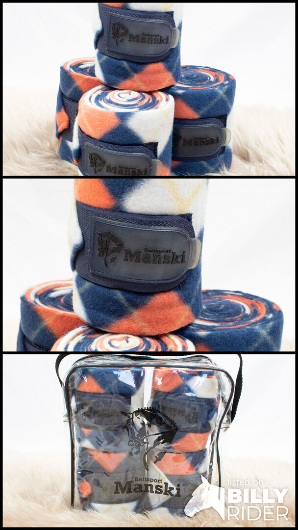 Die tollen Bandagen in Größe WB mit außergewöhnlichem Karomuster sind ein wahrer Hingucker. Die navy & orangefarbenen Bandagen kommen im 4er Set. Sie haben eine Länge von 3,3 m. Die Bandagen sind neu.