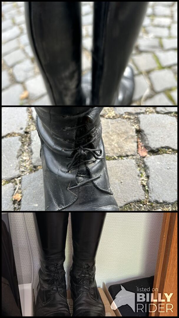 Maßanferigung Mit Schnürung und Reißverschluss. Schaftweite 38 cm. Wurden nur auf Turnier getragen, also selten. Inklusive StiefelSpanner