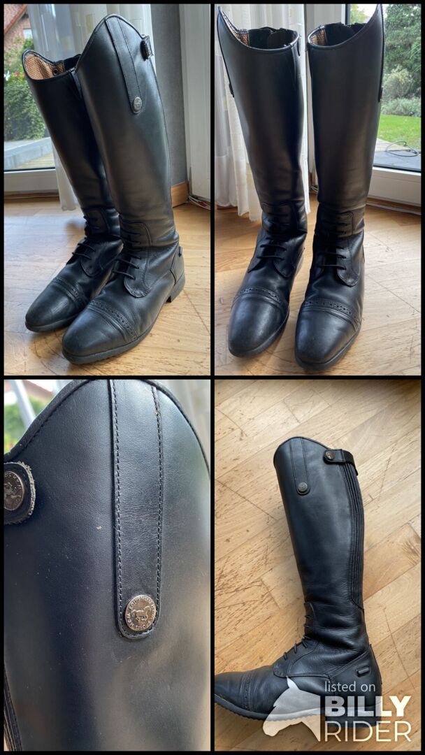 Hallo, ich verkaufe meine Reitstiefel von HKM. Das Leder hat nur leichte Gebrauchsspuren, ansonsten ist es völlig in Ordnung, Größe, Höhe und Breite sind auf einem Bild angegeben. :)