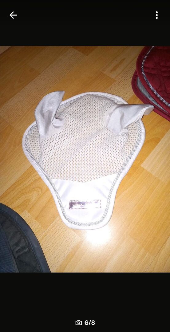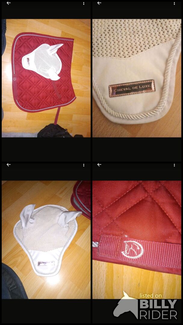 Ridersdeal Schabracke in einem schönen etwas dunklerem Rot mit silberner Kordel in DR/Full. Schabracke lag nur einmal auf dem Pferd ist also quasie wie neu. Keine Beschädigungen. Ich würde Fliegenohren in WB (weiß mit rosé goldenem Lugo von cheval DE luxe) gratis mit abgeben - Diese sind auf den Bildern zu sehen&werden selbstverständlich vor Abgabe gewaschen.