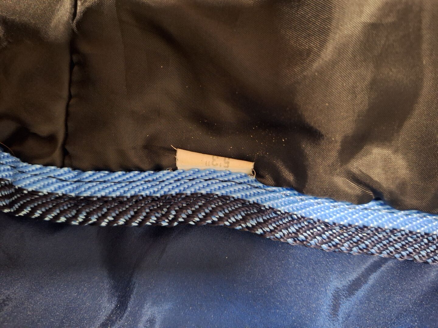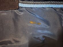 Die Decke ist wie auf den Bildern zu erkennen an einer Frontschnalle etwas eingerissen und hat eine Rostverfärbung an der Innenseite. Daher nicht neuwertig.