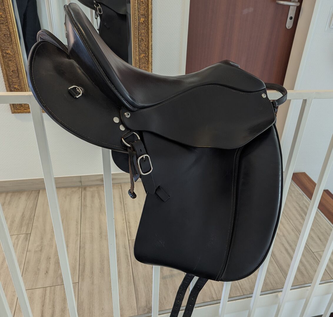 Wir verkaufe einen sehr bequemen, schwarzen 18‘‘ Rieser Sattel für Dressur- u. Wanderreiten mit 3D Holz-Baum. Der 3D-Baum ist anpassbar. Der Sattel wurde an unseren Westfalen Wallach (164cm, eher schlank gebaut) angepasst. Die Equiscan-Daten von unserem Pferd liegen vor und können angefragt werden.