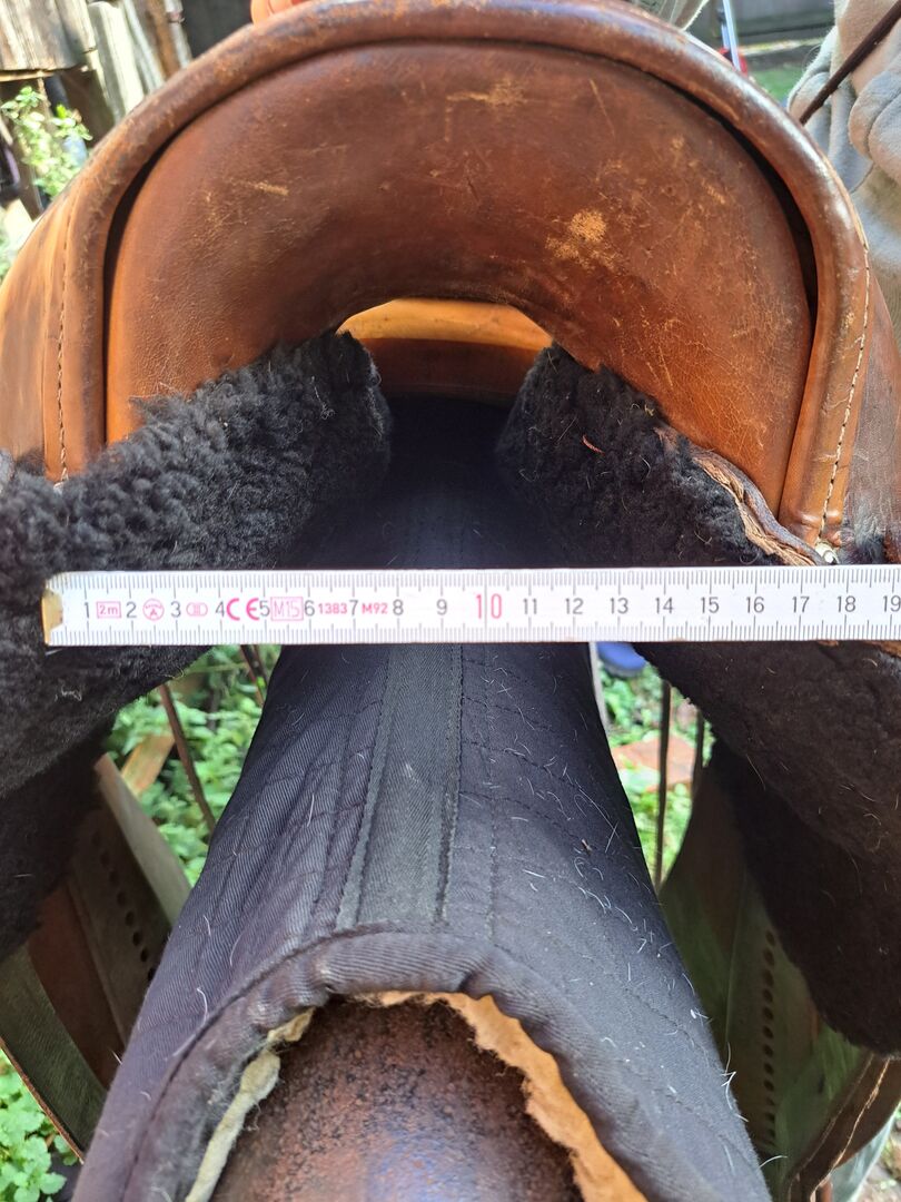 Der Sattel ist mit seinen 60cm eher kurz und es ist wie auf den Bildern zu erkennen ein roundskirt Westernsattel. Die Kammerweite liegt derzeit bei circa 18cm.