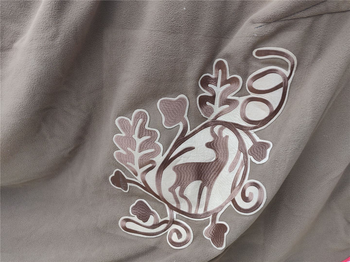 Kaum verwendete Abschwitzdecke von Rossalm, Gr. 155 cm, braun, atmungsaktiv, Schweiß absorbierend, mit Logo Stickerei, Karo-Einfassband und farbiger Kordel im traditionellen Look gehalten.