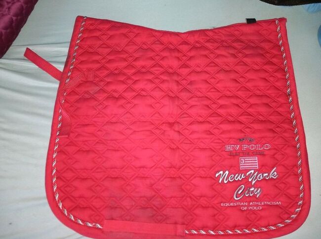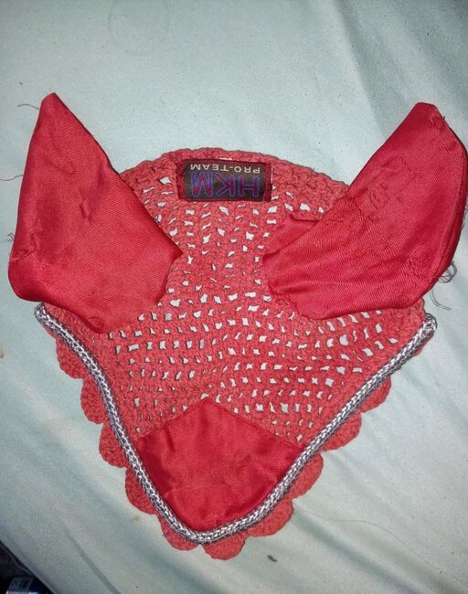 Rote HV Polo Schabracke in DR mit farblich passenden Fliegenohren von HKM in WB/Full. Beides zusammen gebraucht auf Kleinanzeigen gekauft für 35€ Privatverkauf, daher keine Gewährleistung, Garantie oder Rücknahme.