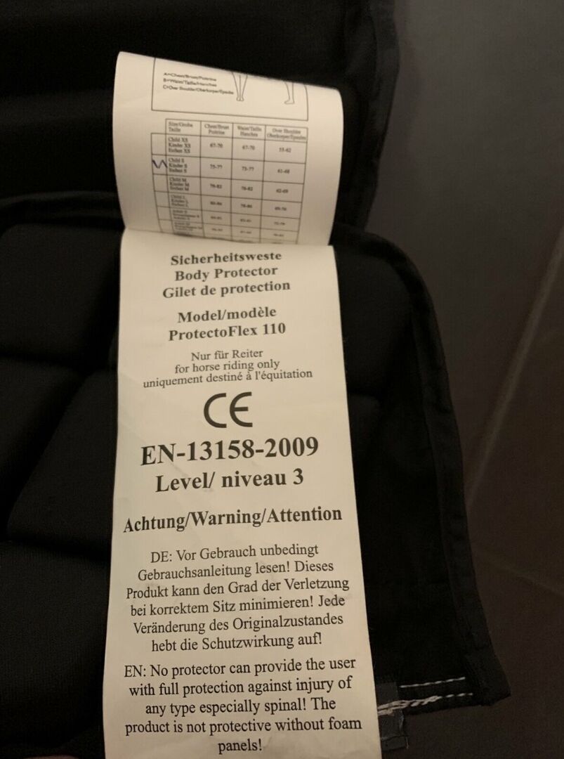 ich verkaufe hier einen Stufe 3 Protektor von Covalliero, Modell 110 mit Reflektoren, da er mir leider zu klein ist.