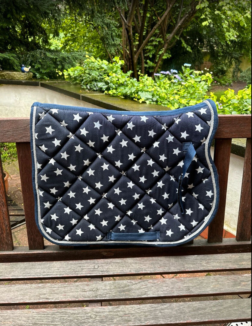 Wunderschöne blaue Satteldecke mit Sternchen.