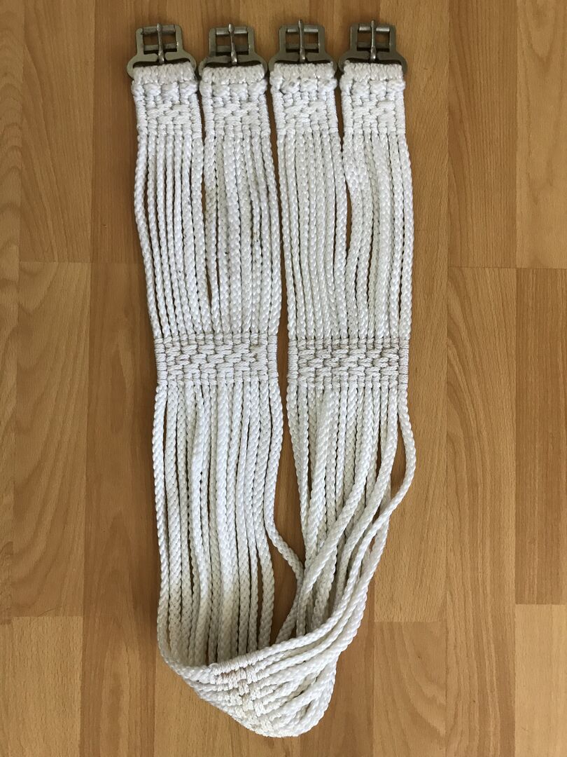 Sattelgurt Langgurt Schnurengurt weiß 125 cm, 10 cm breit, gebraucht aber guter Zustand, leichter Rost an den Schnallen, zu verschenken bei Abholung oder Erstattung der Versandkosten vom 2,70 €