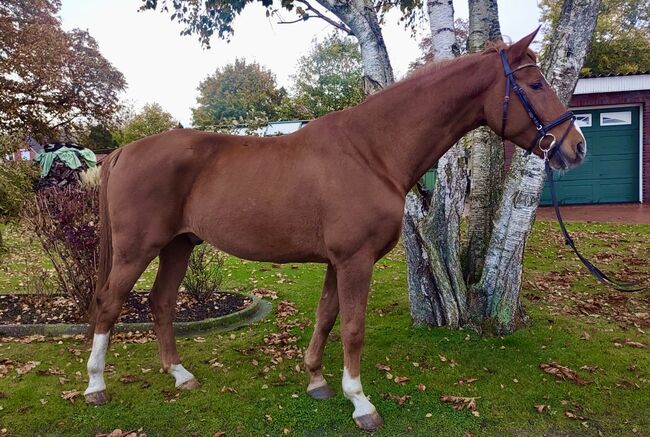Dieser hübsche dressurbetonte Wallach sucht ein neues liebevolles Zuhause. Er geht gut in allen drei GGA und macht auch schon brav einen kleinen Sprung unter dem Sattel.