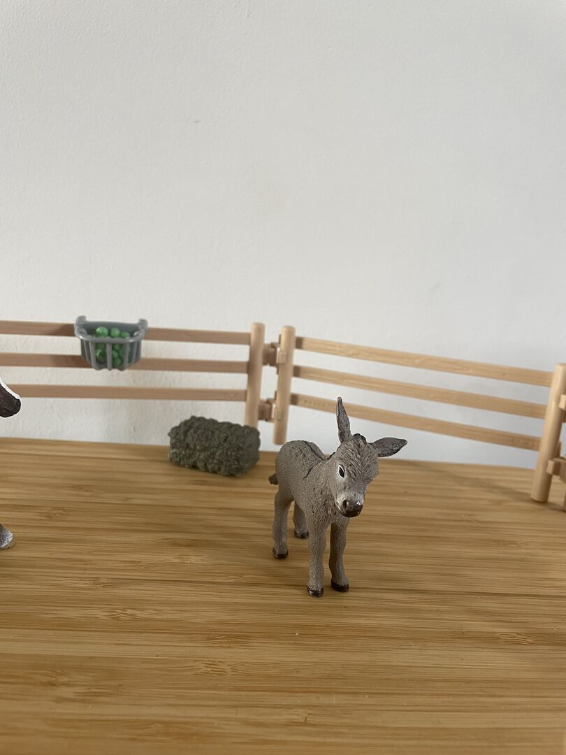 Verkaufe ein sehr gut erhaltenes Paddock von Schleich mit Zubehör. Inkl sind das Paddock, das Fohlen und der Esel sowie der Heuballen und der Futtertrog. Zustand bespielt, dennoch gut erhalten. Kein Umtausch, Keine Gewähr Versand möglich Bei Interesse gerne melden :)