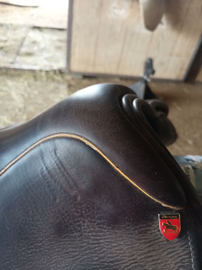 Bequemer, sicherer Sturgess 18"-Sattel. Etwa eine mittlere Passform. Der Holzbaum kann von Ihrem Sattler mit einer Presse eingestellt werden. Der Flair kann um 1,5 Größen verstellt werden, ohne den Baum zu berühren. Wird mit Kniepauschen geliefert. Die Naht an der Rückseite des Sattels ist sehr leicht locker, aber so wie sie ist, brauchbar.