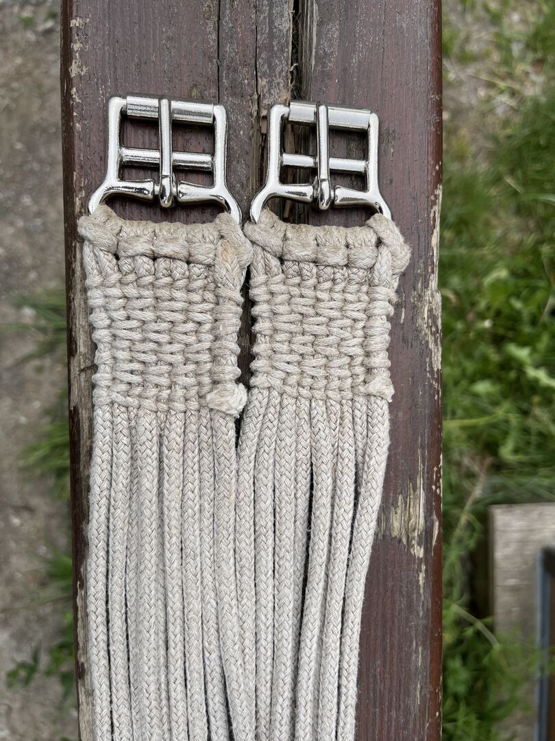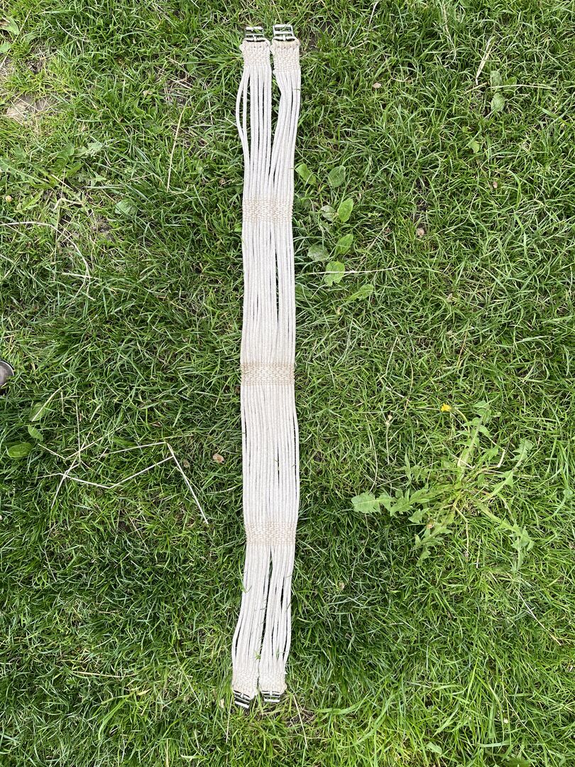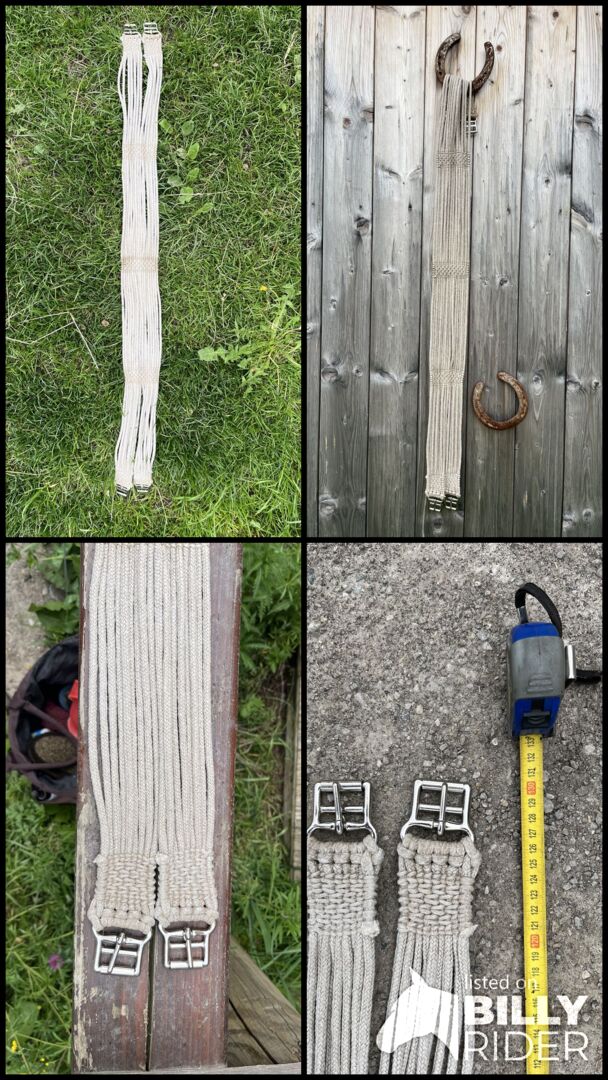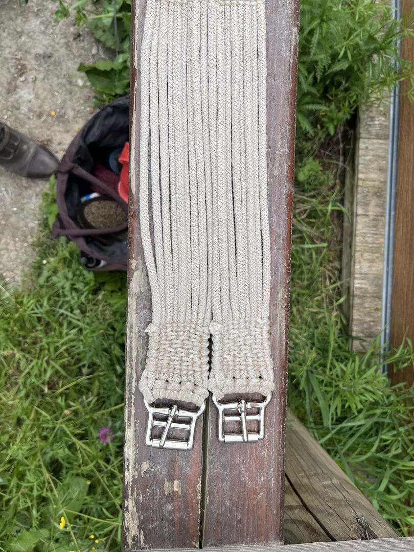 Verkaufe einen wenig genutzten, sehr hochwertigen Schnurengurt der Qualitätsmarke Röösli. Er ist aus Flachs hergestellt und laut Hersteller besonders für junge und empfindliche Pferde geeignet. Die Länge ohne Schnallen gemessen beträgt 120cm, mit Schnallen 130cm. Der Gurt wird in der Schweiz hergestellt, der NP lag bei 400.-