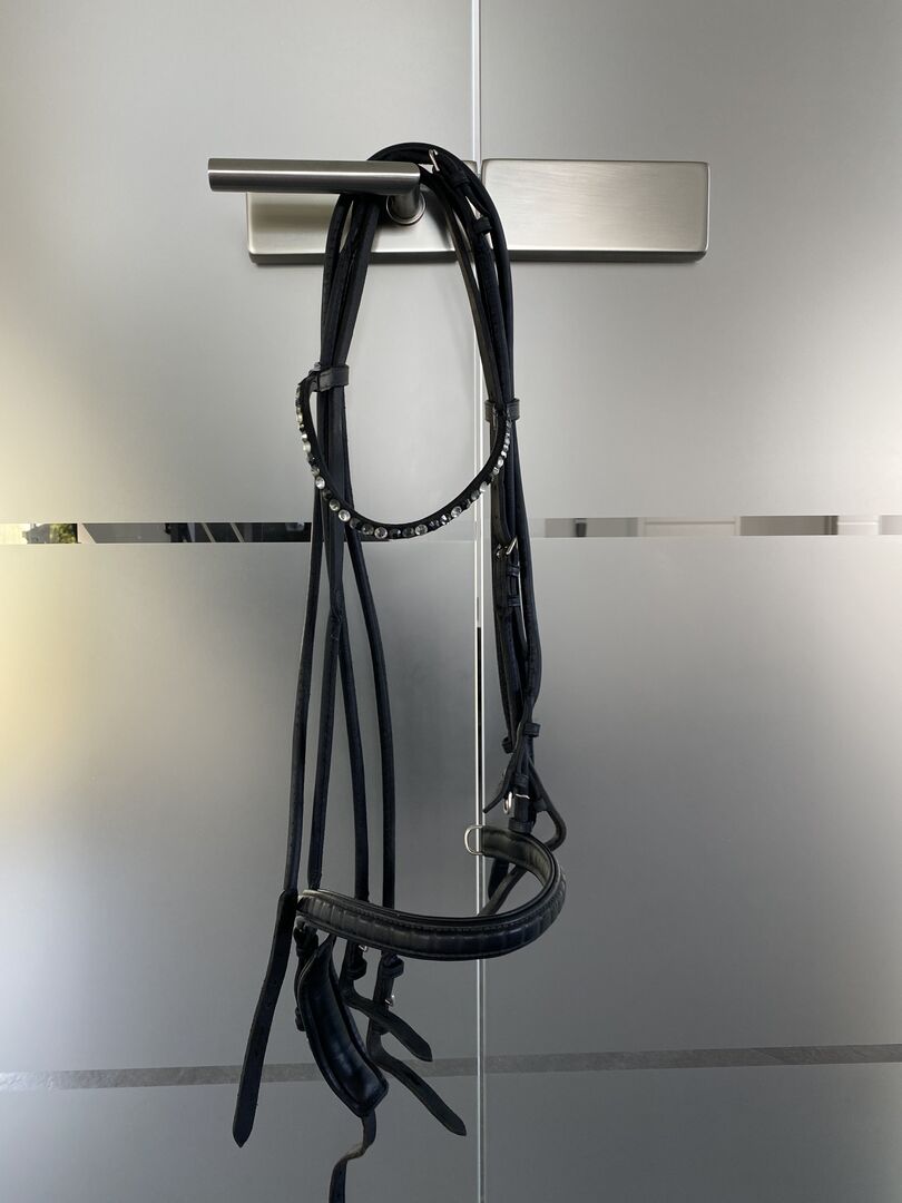 Ich verkaufe diese rundgenähte Kandare in Größe WB, da sie meinem Pferd leider zu klein ist. Ich habe sie gebraucht gekauft und sie ist in einem guten Zustand. Mit dabei sind zwei Zügel, einer davon ist ein Gummizügel, beide mit normalen Gebrauchsspuren.