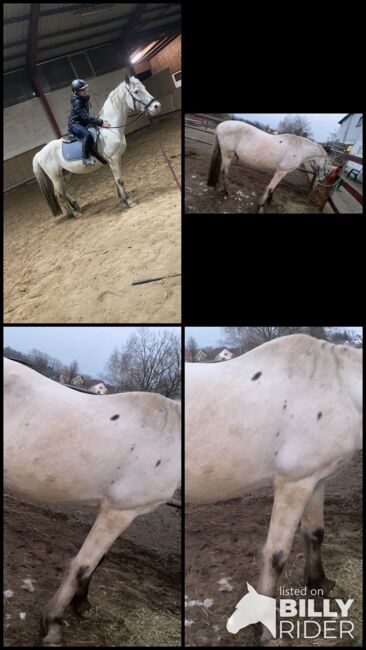 Er ist ein 13 jähriger Wallach mit voller Abstammung und ca 1.53 groß . Er war lange in der Zucht und wurde deshalb spät von uns angeritten hierbei zeigt er sich immer brav nur braucht er noch etwas Übung . Er lernt unglaublich schnell und will immer gefallen. Er passt immer auf seinen Menschen auf selbst wenn er mal Angst vor was hat würde er niemals gegen den Menschen laufen . An der Longe ist er in allen drei Gangarten geritten frei klappt es mit einer Vertrauensperson mittlerweile auch ganz gut . Er ist ein Schmuser im Umgang und geniest es geputzt zu werden . Er kennt stangenarbeit bodenarbeit und Freisprünge . Er wird bei uns nur gebisslos geritten und kommt damit gut zurecht .