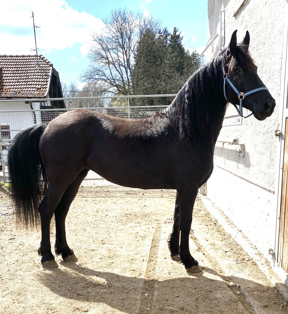 Zum Verkauf steht die 7-jährige Arabofriesen-Stute Gelina - eine hübsche, feinfühlige Stute mit viel Ausstrahlung und Entwicklungspotenzial. Ausbildungszustand: kein Fohlen-ABC und roh. Geburtsdatum: 15.5.2018, Araboblutanteil: 29,69%, Stockmaß: ca. 157 cm.
