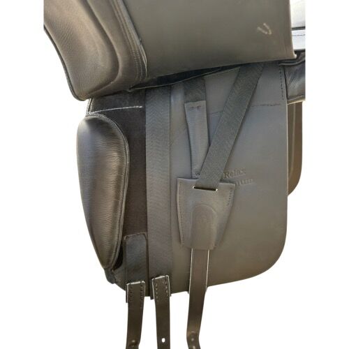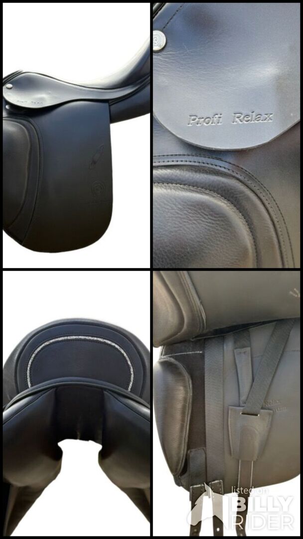 Hersteller: Schumacher Modell: Profi Relax Maximum Baujahr: 2021 Sattelnummer: 200421 Sitzgrösse: 17,5 Zoll (3) Kammerweite: 31 = weite Kammer Farbe: schwarz Pausche: Klettpausche, individuell verstellbar Highlight: Fineline Spiegel in Kristallfarben (letztes Bild) Zustand: Neuwertig, wurde einmal beritten.