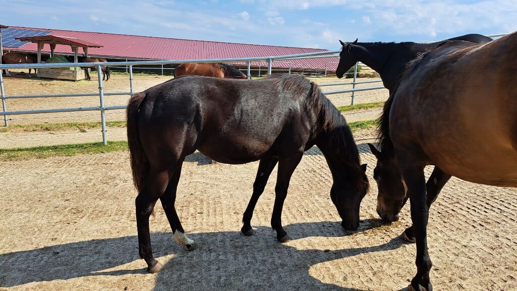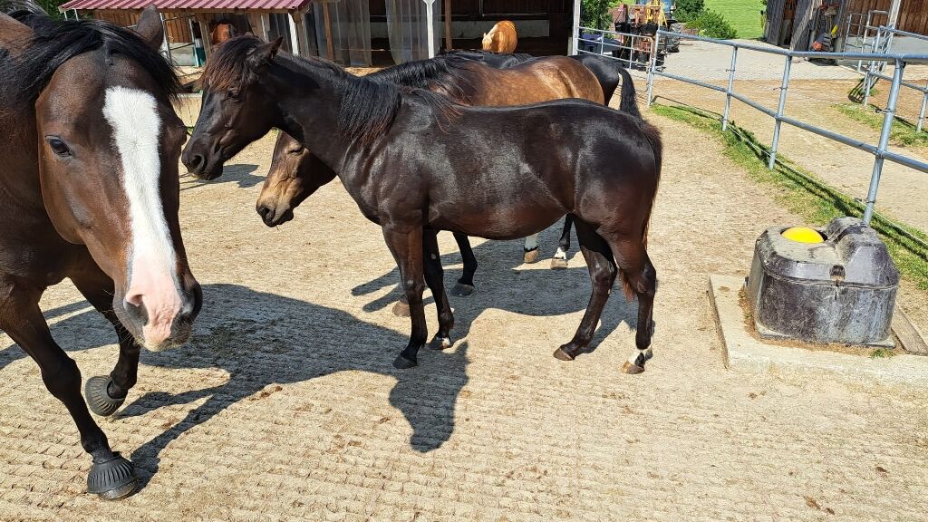 Ganz liebe, menschenbezogene Quarter Horse Stute in der tollen Farbe Black sucht ein liebevolles, förderndes Zuhause. Die Hübsche kommt direkt vom Züchter und ist 2022 geboren. Sie wird eher großrahmig und bekommt ein geschätztes Endmaß von 152 bis 154 cm. Luzi wächst artgerecht in einer kleinen Stutenherde auf. Bekommt hochwertiges Mineral- und Kraftfutter sowie 24/7 Heu und Wiese. Im Umgang ist sie brav, zutraulich und menschenbezogen. Kennt das Fohlen ABC sowie regelmäßige Hufbearbeitung. Luzi hat volle Papiere und eine gute Allround/Foundation Abstammung. Sie kann gerne zur Aufzucht bleiben. Luzi verspricht ein toller Partner für die Freizeitgestaltung zu werden.