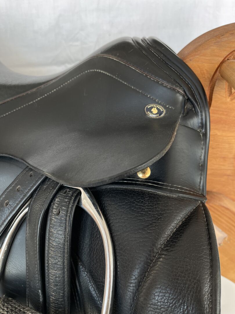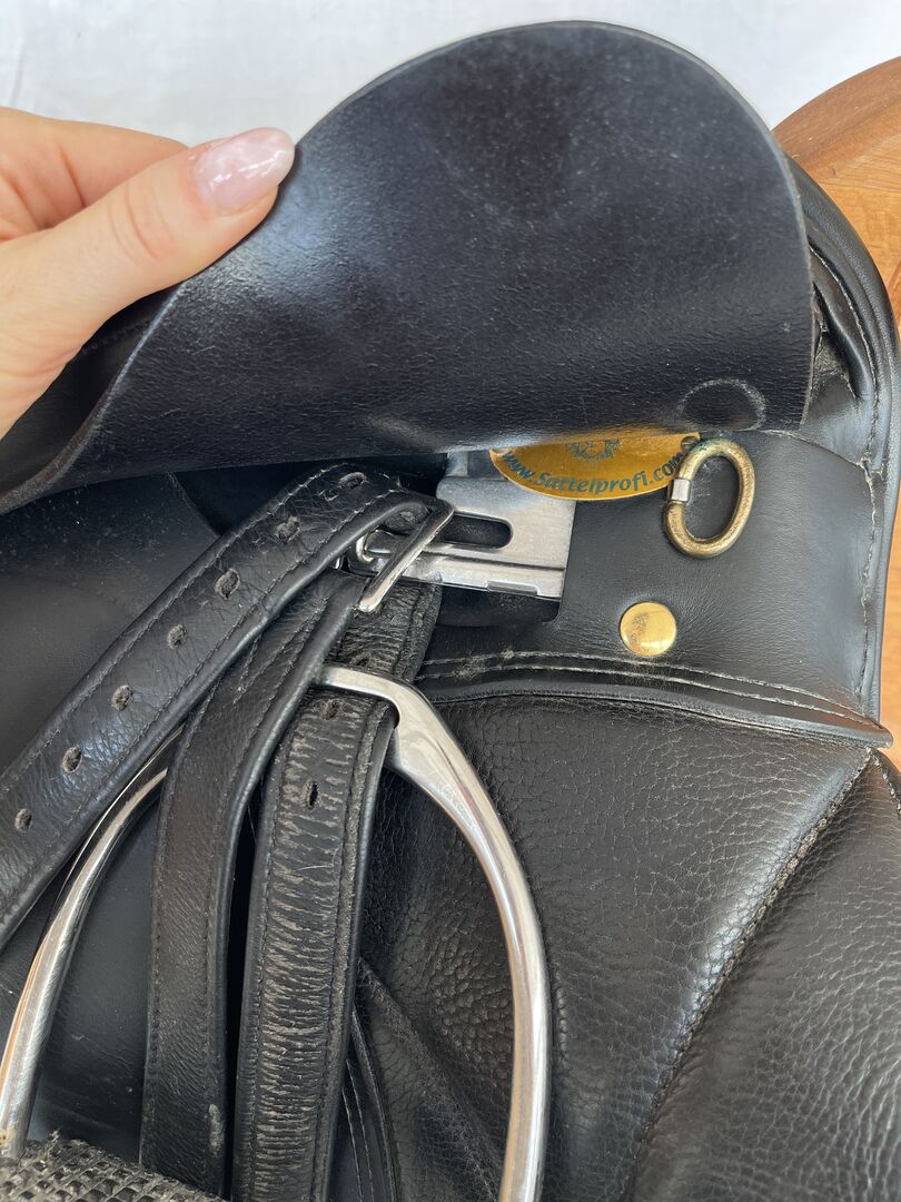 Sitzgröße 43 cm = 16,5 inch Begurtung Vorgurt, Sattelblätter 4 cm verlängert